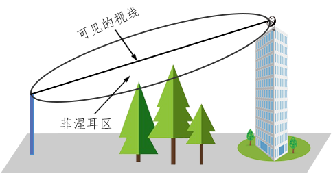 菲涅耳区是在收发天线之间,由电波的直线路径与折线路径的行程差为nλ/2的折点(反射点)形成的、以收发天线位置为焦点,以直线路径为轴的椭球面。其中n=1的区域是对信号作主要贡献的区域,称为第一菲涅耳区,亦称有效区。